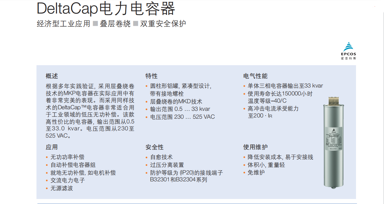 品 牌:EPCOS/TDK 名 称:电力电容器 规 格:B25667B4826A375/MKK440-D-5-01 现货库存量:135只 * EPCOS/TDK全新原装正品、原厂原封包装、新批次
