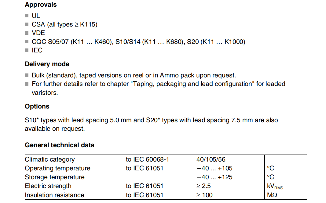 | B72210S2251K551 | 、 | B72210S2461K101 | 、 | B72214Q271K101 | 、 | B72214S110K551 | </br> | |